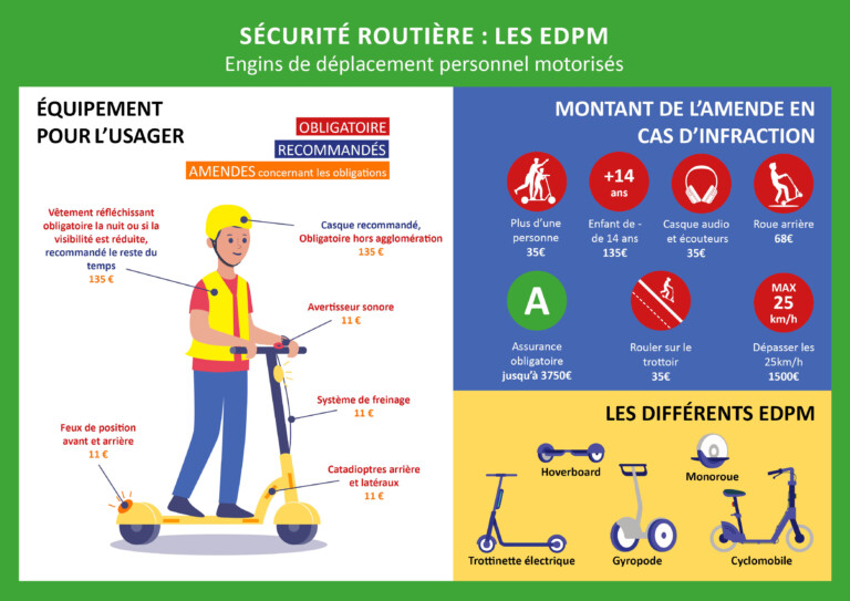Rappel des règles pour les EDPM Les engins de déplacement personnel motorisés (EDPM), tels que les trottinettes électriques, gyropodes, hoverboards […]